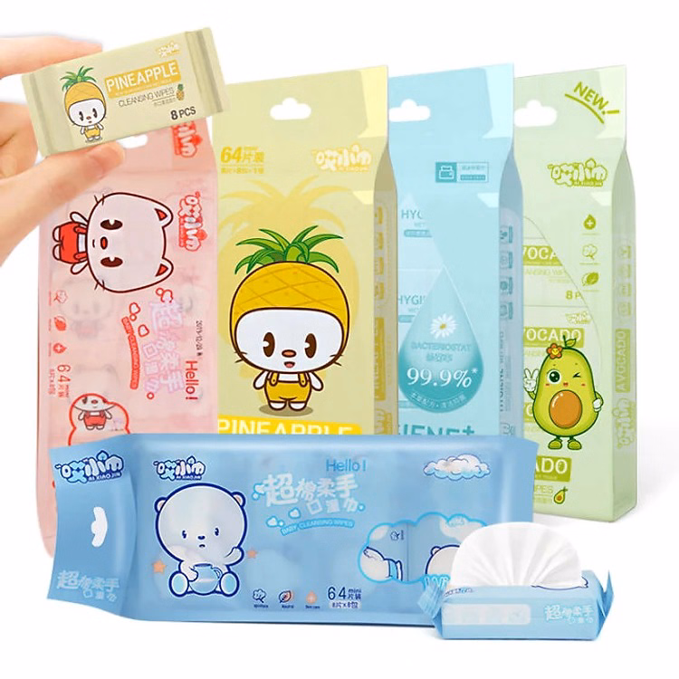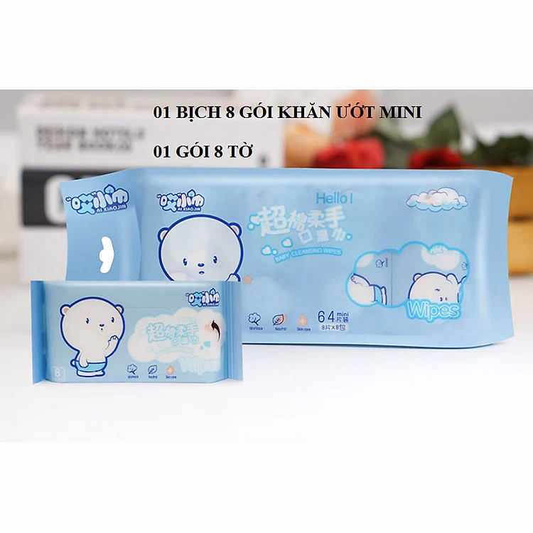 Bịch 8 gói 64 tờ khăn ướt mini bỏ túi tiện lợi