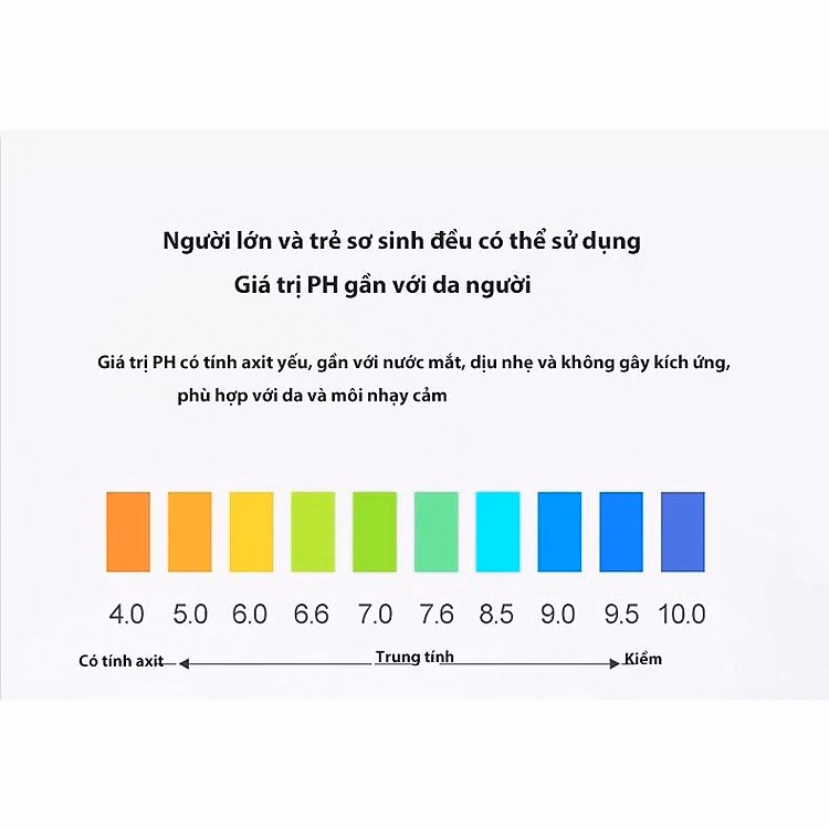 Không cồn, không chất tẩy trắng, không chất tạo mùi. Có thể sử dụng cho trẻ em