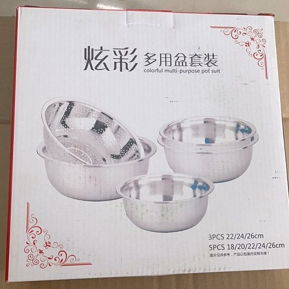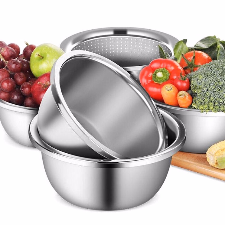 🌟 Bộ 5 thau và rổ inox với các cỡ từ to đến nhỏ