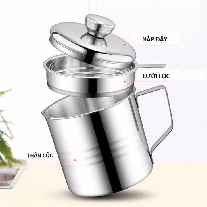 Âu Đựng Mỡ Inox Kèm Vỉ Lưới Lọc