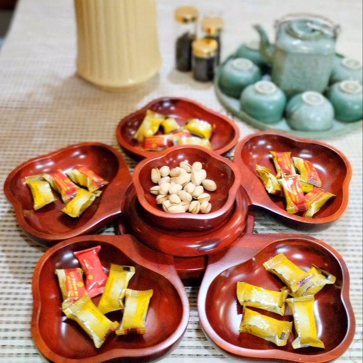 [Bộ] Bí Đựng Bánh Mứt 4 In 1 Gỗ Tràm – Tường Thuận