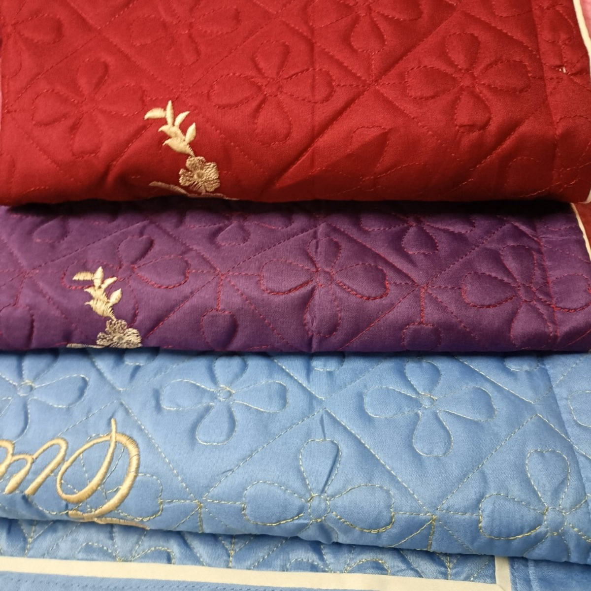 Hoa văn trên vải sử dụng công nghệ thêu hiện đại cho màu sắc bền lâu, tươi trẻ.