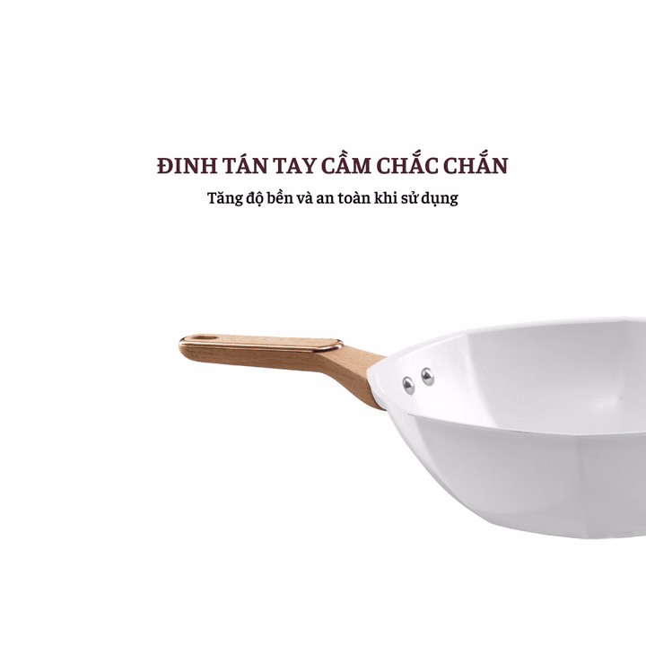 Tay cầm: Làm từ gỗ sồi chống thấm, không truyền nhiệt, ngăn ngừa vi khuẩn và nấm mốc, an toàn khi sử dụng.