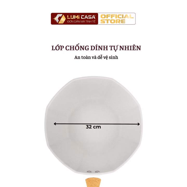 Chảo Chống dính thép Carbon có nắp Lumi Casa 32cm Công Nghệ Đức – Siêu bền, bắt nhiệt nhanh