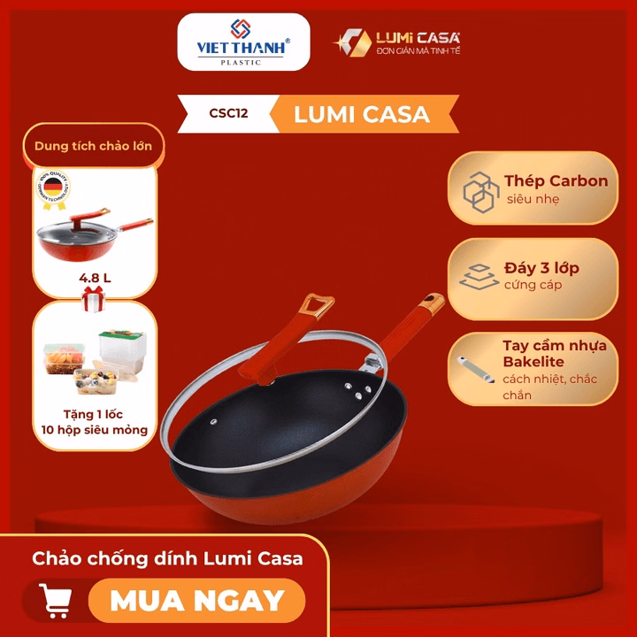 Chảo Chống Dính Thép Carbon Không Gỉ Lumicasa Csc12-32 Công Nghệ Đức – Siêu Bền Và Tiết Kiệm Năng Lượng