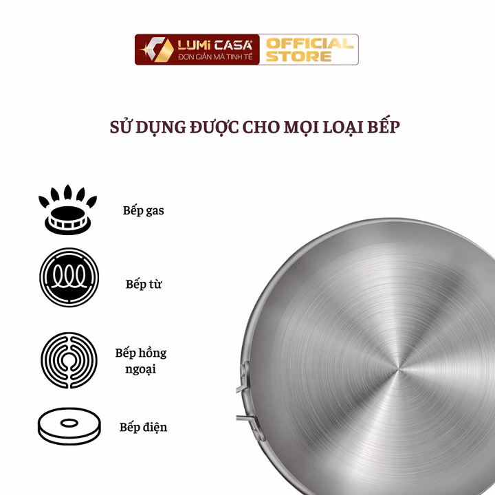 Kích thước: Đường kính 26cm, phù hợp với mọi loại bếp, bao gồm bếp từ.