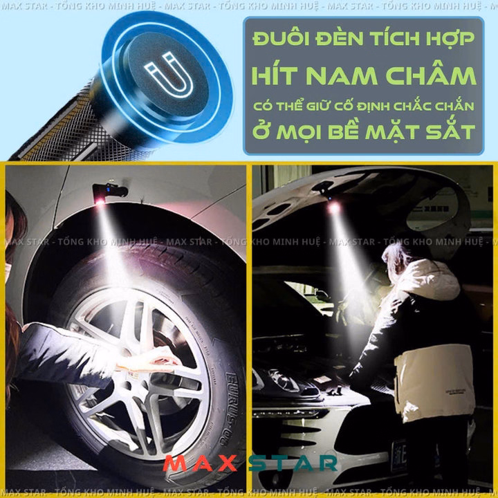 ✔ Đuôi đèn tích hợp hít nam châm có thể giữ cố định chắc chắn ở mọi bề mặt sắt
