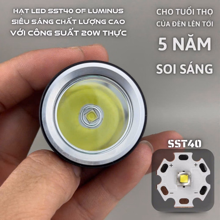 ✔ Hạt Led Sst40 Of Luminus siêu sáng chất lượng cao với công suất 20W thực cho tuổi thọ của đèn lên tới 5 năm soi sáng