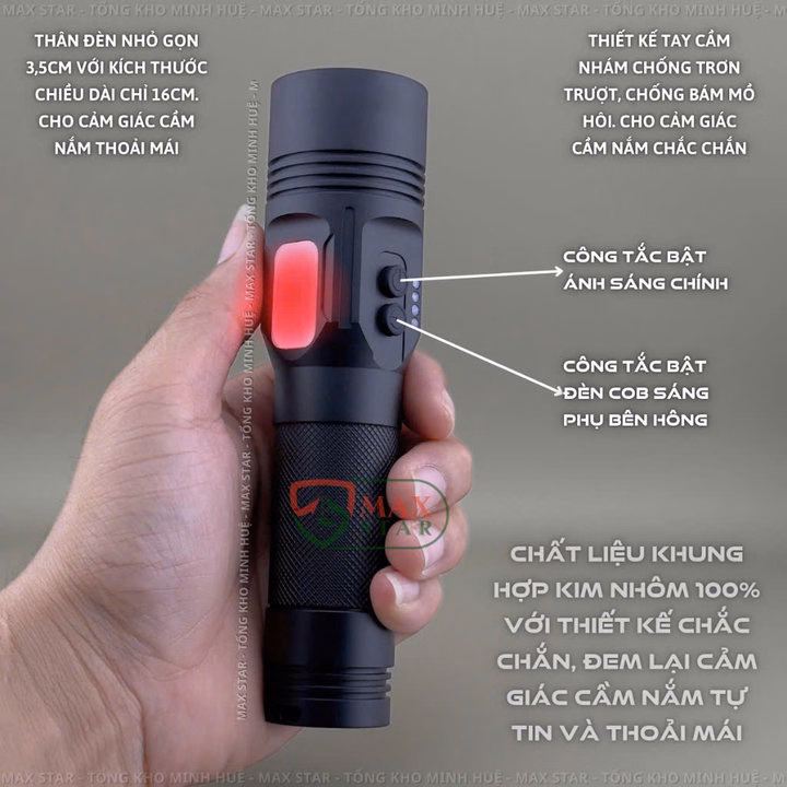 Đèn Pin Cầm Tay Siêu Sáng Cao Cấp Max Star N001 Led Sst40 Chính Hãng Pin Trâu Sạc Ngược Chân Cáp Sạc Nhanh Typec Gd225 – Lady’S Passion