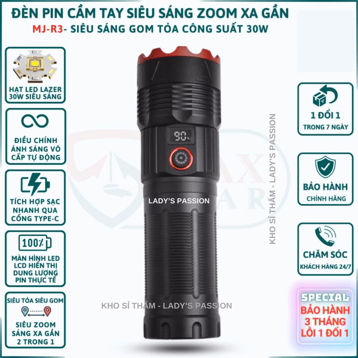 Đèn Pin Cầm Tay Siêu Sáng Mj R3 Zoom Sáng Soi Gom Tỏa Xa Gần Pin Trâu Chống Nước Vỏ Nhôm Chất Lượng Cao Gd223 – Lady’S Passion