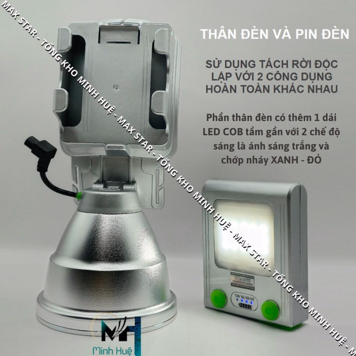 ✔ Thân đèn sử dụng độc lập nên cũng được tích hợp thêm 1 dải Led Cob tầm gần, với 2 dạng sáng là sáng trắng và sáng chớp nháy Xanh-Đỏ