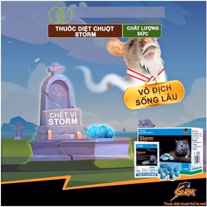 Thuốc diệt chuột sinh học Storm không cần trộn thêm mồi, diệt chuột hiệu quả cao, liều dùng cực thấp giúp tiết kiệm chi phí, và an toàn cho người, vật nuôi.