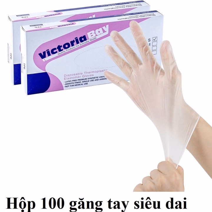 – Găng tay làm bếp nấu ăn vệ sinh Victoria Bay được làm từ chất liệu Tpe siêu dai, không mùi, chống nhăn hộp 100 cái, an toàn khi sử dụng.
