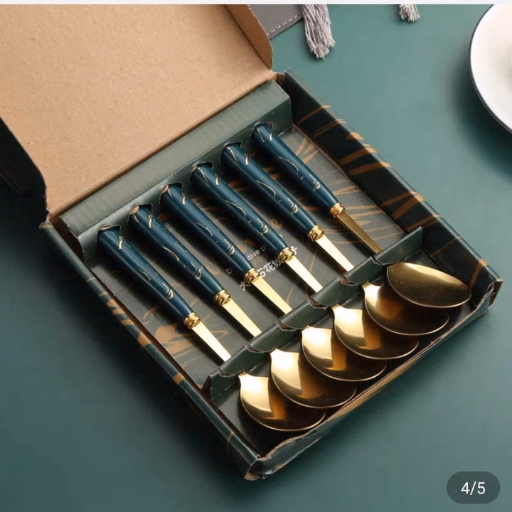 Hộp 6 Thìa Cán Mạ Giả Cẩm Thạch