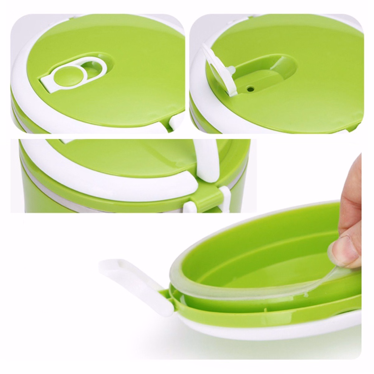 – Thiết kế độc đáo với 3 lớp: nhựa Pp ở ngoài, lớp xốp ở giữa và bên trong là lớp thép không gỉ có tác dụng giữ nóng vô cùng hiệu quả và không làm thay đổi mùi vị thức ăn..