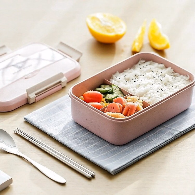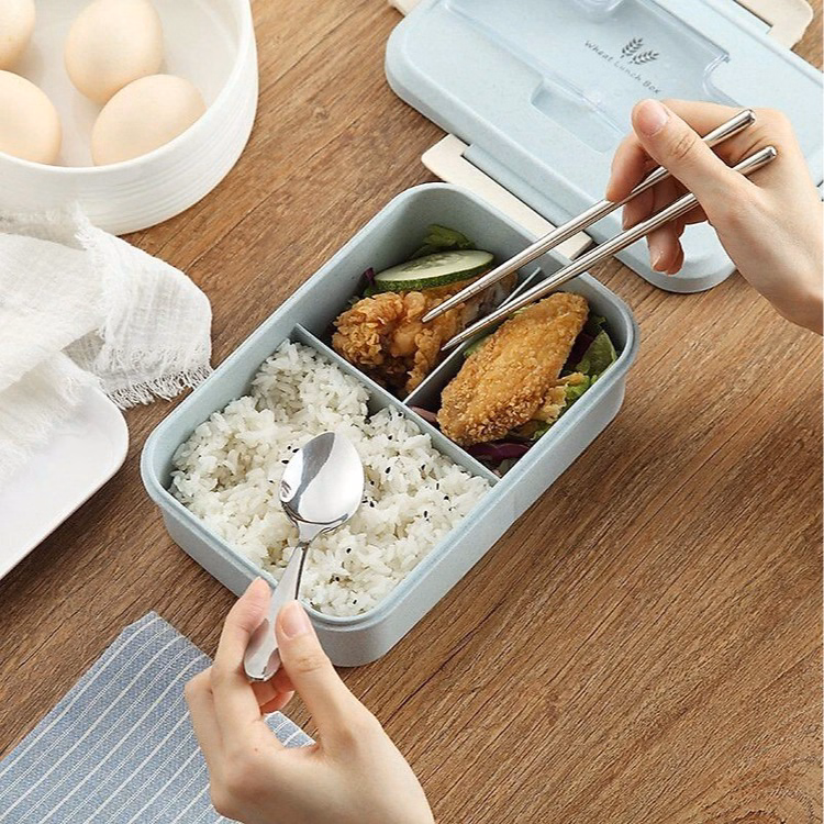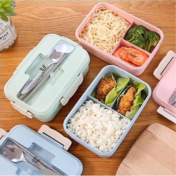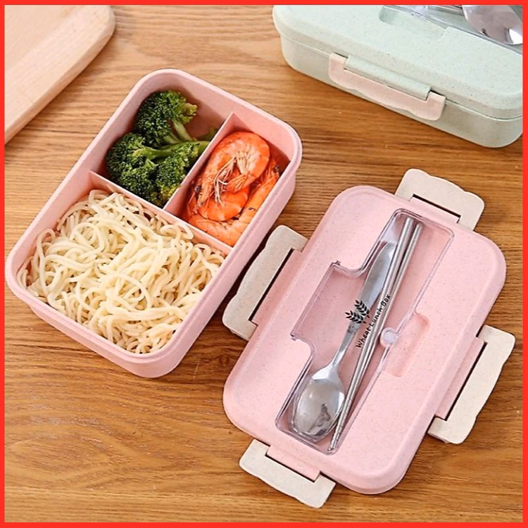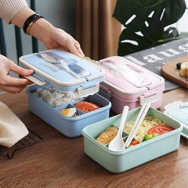 Hộp Cơm Lúa Mạch 3 Ngăn Tặng Kèm Thìa Đũa Ctb434 – Bechip