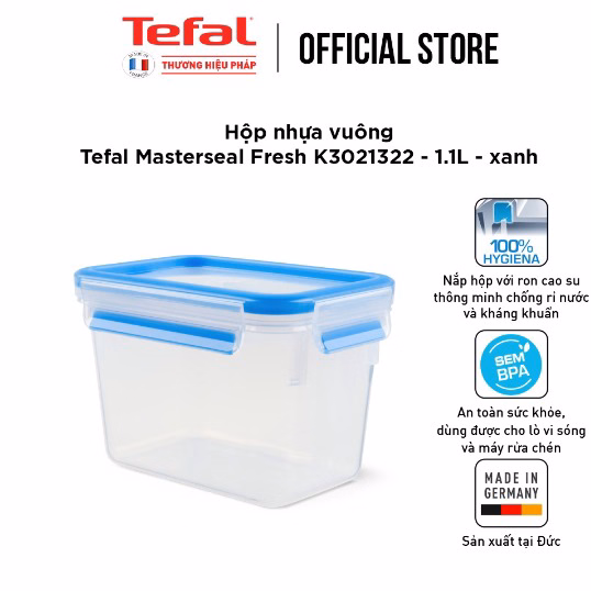 Hộp Nhựa Vuông Tefal Masterseal Fresh 1.1L Màu Xanh K3021322 – Sht House