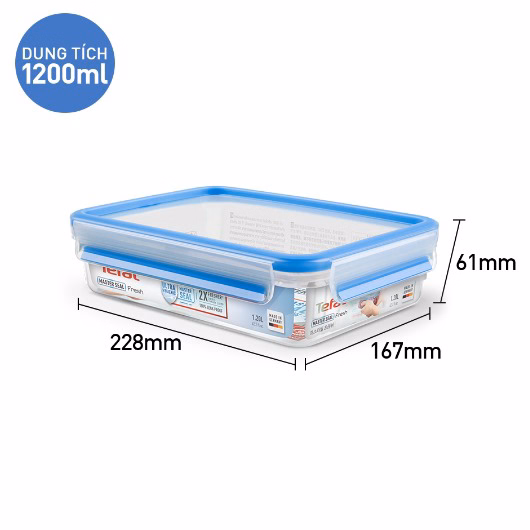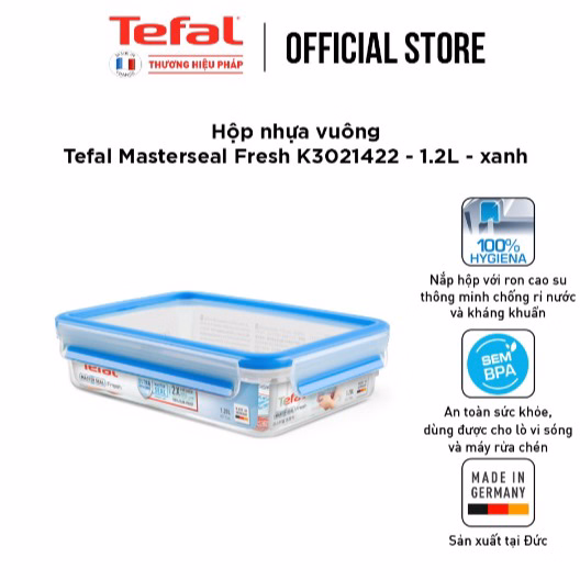 Hộp Nhựa Vuông Tefal Masterseal Fresh 1.2L Màu Xanh K3021422 – Sht House