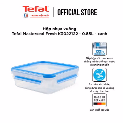 Hộp Nhựa Vuông Tefal Masterseal Fresh K3022122 – 0.85L – Xanh – Tefal