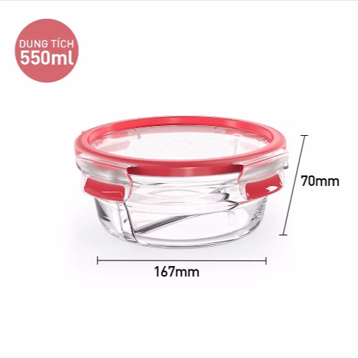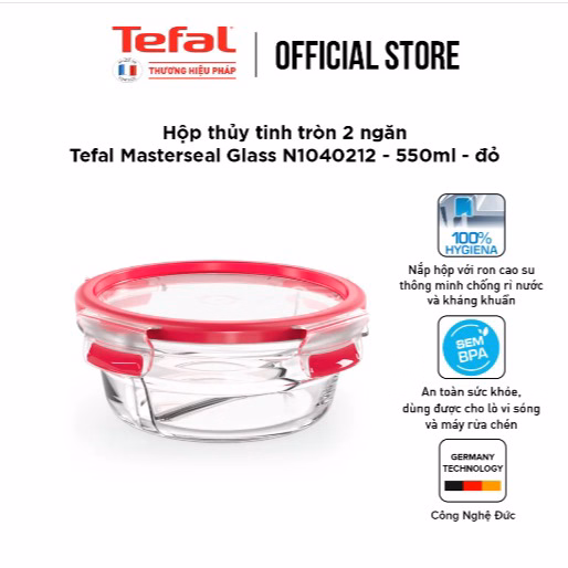 Hộp Thủy Tinh Tròn 2 Ngăn Tefal Masterseal Glass N1040212 – 550Ml – Đỏ – Tefal