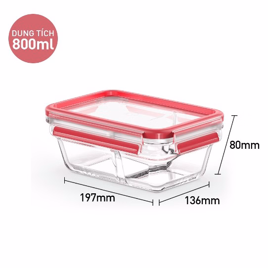 Hộp Thủy Tinh Vuông 2 Ngăn Tefal Masterseal Glass 800Ml Màu Đỏ -N1040712- Sht House
