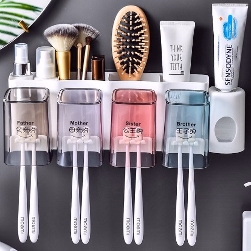 Kệ 4 Ngăn Đựng Kem Đánh Răng Kèm 4 Ly