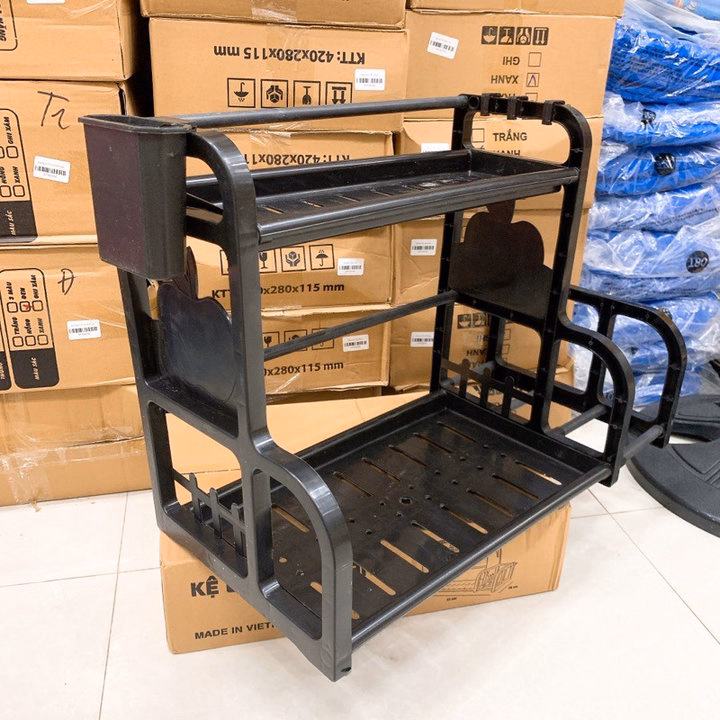 – Thiết kế nhỏ gọn, hiện đại, thao tác lắp ráp đơn giản, nhanh chóng, chiếc kệ còn kèm theo 4 móc treo, ngăn treo dao, ngăn chứa thớt cực đa năng và tiện lợi, các khay chứa đều có rãnh chứa nước, đảm bảo kệ luôn khô ráo, tránh được các loại vi khuẩn gây hại cho sức khỏe.