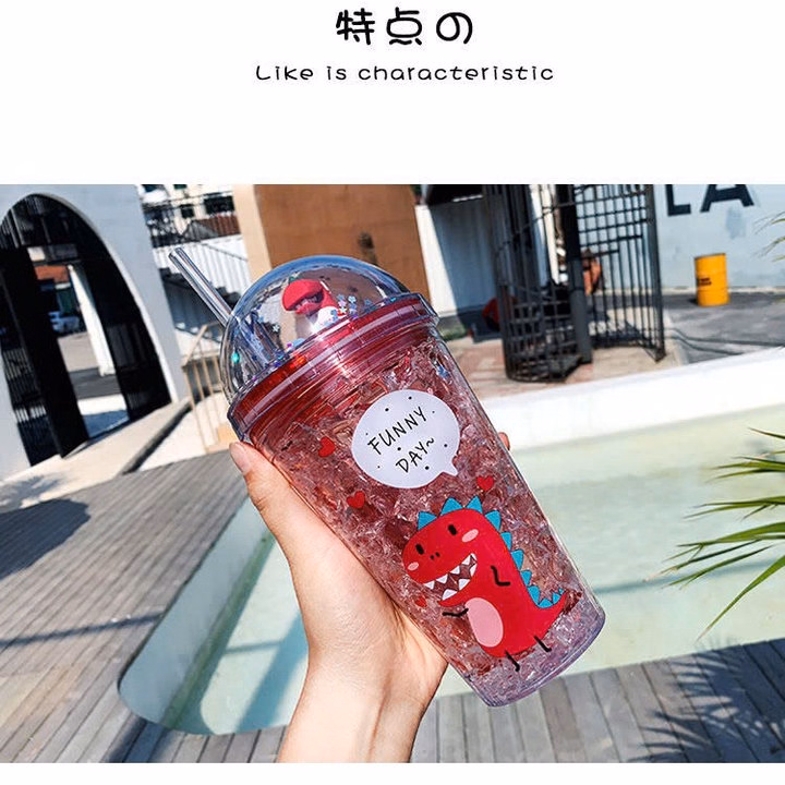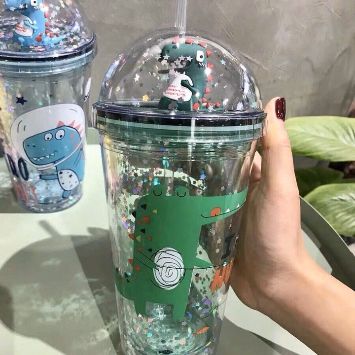Thông tin sản phẩm: Ly Đựng Nước Nhũ Kim Tuyến Hình Khủng Long 450ml -Gdn