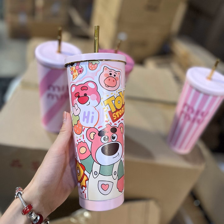 Ly giữ nhiệt hoạt hình có khả năng giữ nhiệt lâu để sử dụng cả ngày, bên ngoài là lớp sơn cao cấp với họa tiết hoạt hình xinh xắn.