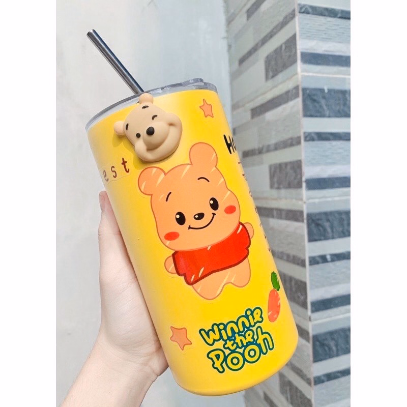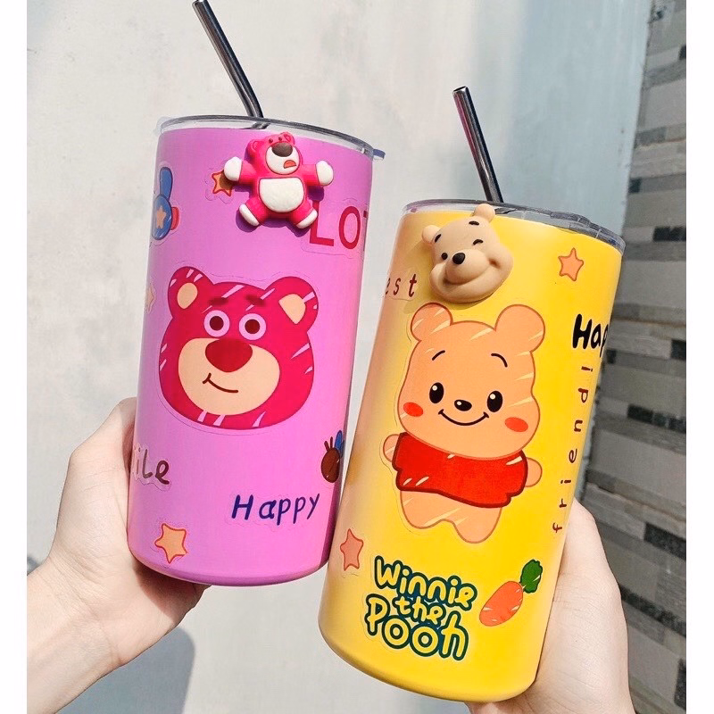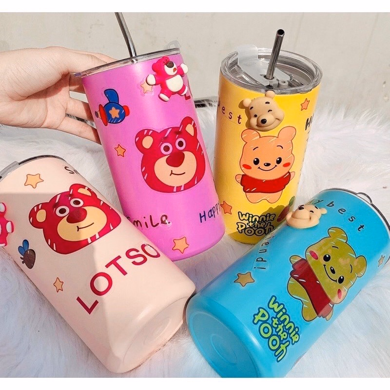 Ly giữ nhiệt gấu lotso được thiết kế xinh xắn với nhiều họa tiết hoạt hình như gấu pooh, ba mắt, toy story đáng yêu.
