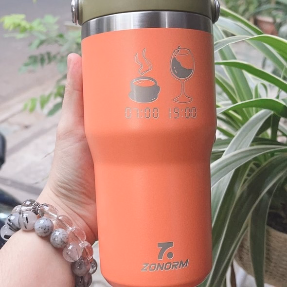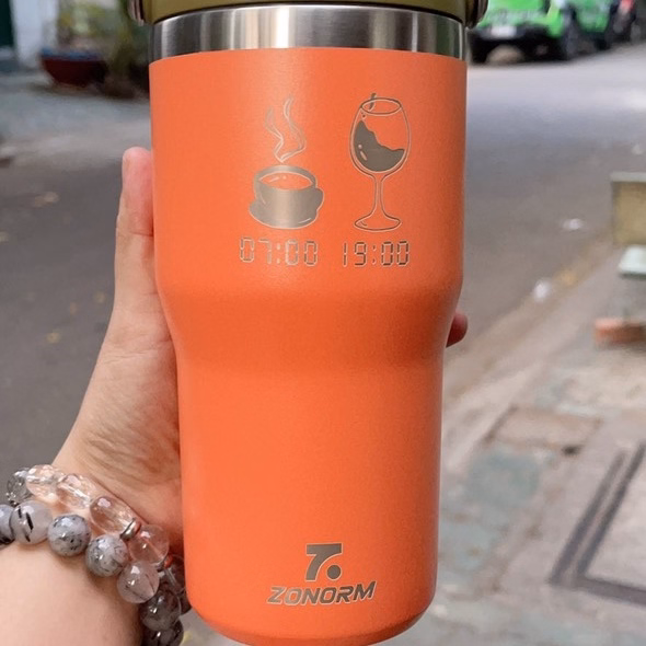 Bên ngoài ly và dưới đáy ly giữ nhiệt được in logo thương hiệu Zonorm vô cùng tinh xảo, tỉ mỉ.