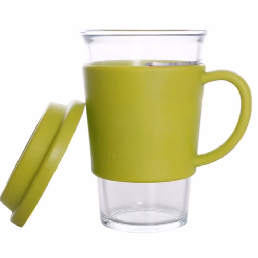 Nắp và quai cầm làm từ nhựa Pp chống trơn trượt, có thêm một vòng quanh thân ly chống nóng khi cầm nóng. Nắp có thể dùng làm lót ly và các bộ phận này có thể tách riêng ra khi cần thiết.