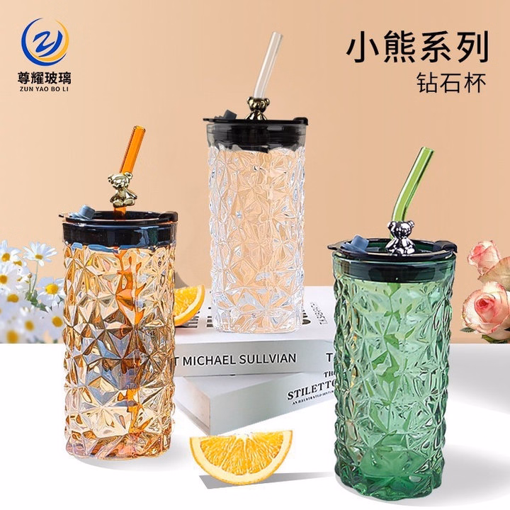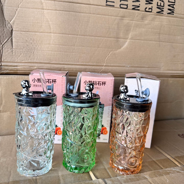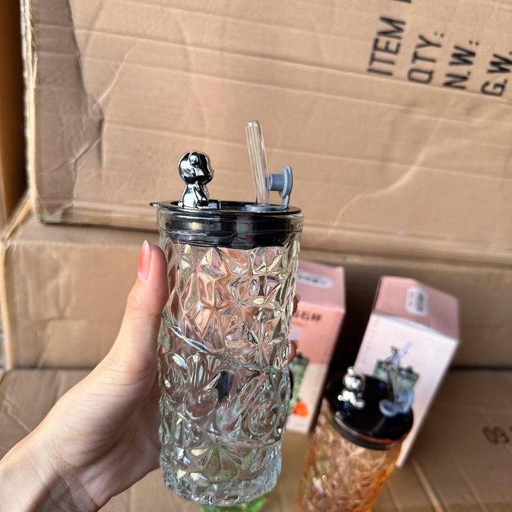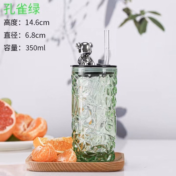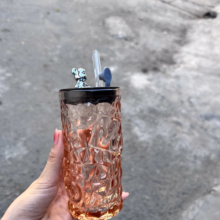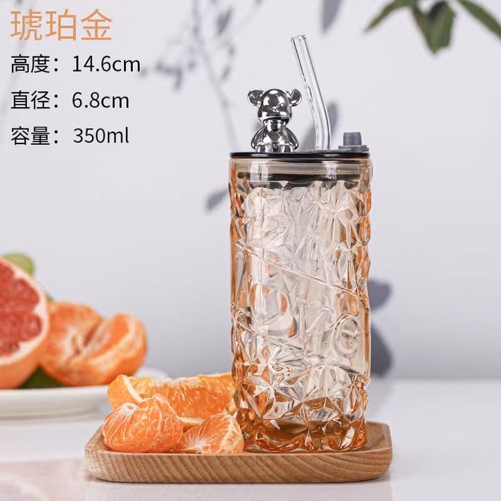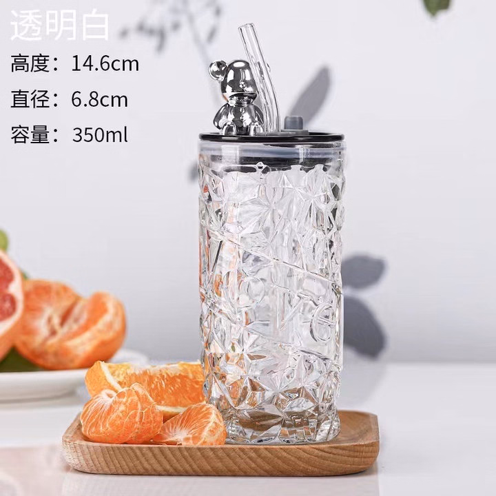 Ly Thủy Tinh Kèm Ống Hút Charm Gấu Bạc 400Ml – Gdn