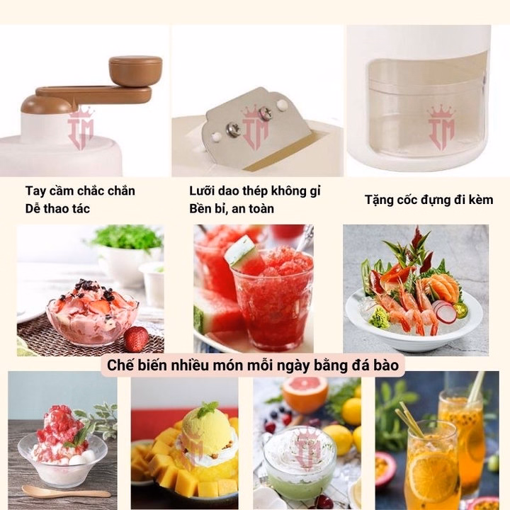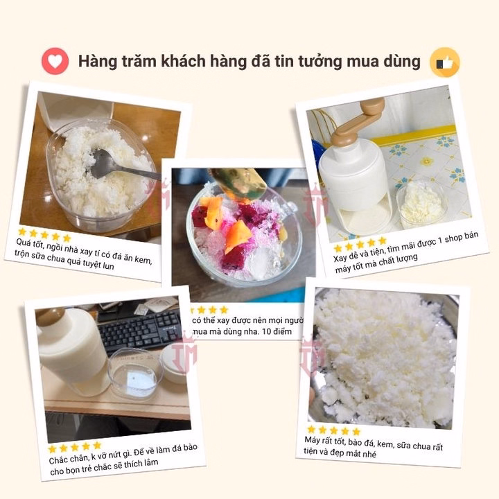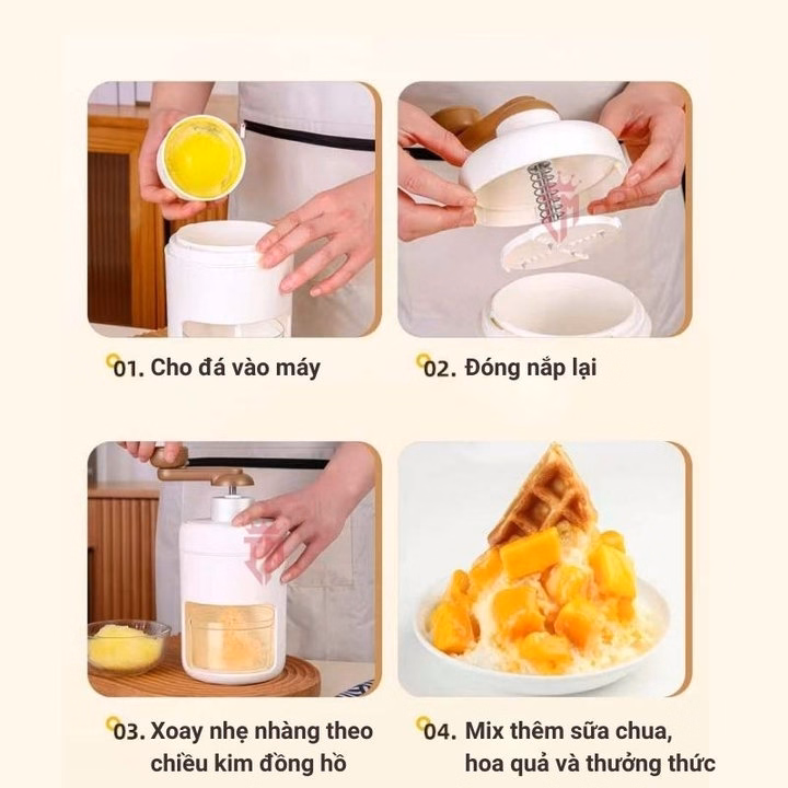 5. Dễ sử dụng: Máy làm đá bào tay vận hành đơn giản, dễ sử dụng, đá sẽ ra ngoài ngay khi rẽ, đá sẽ nhanh bị hỏng.