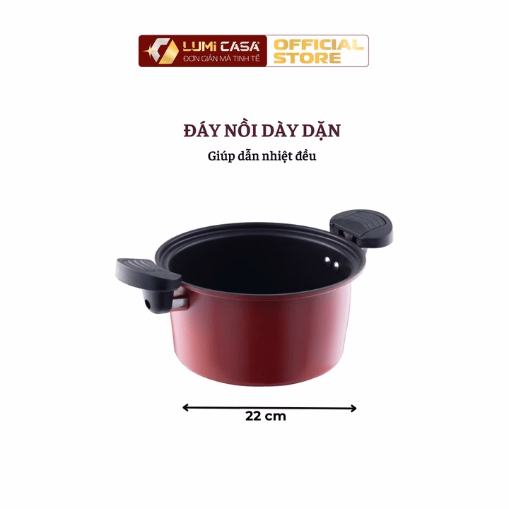 Với đường kính 22cm, sản phẩm phù hợp với mọi loại bếp, kể cả bếp từ, giúp chế biến dễ dàng các món ăn hàng ngày.