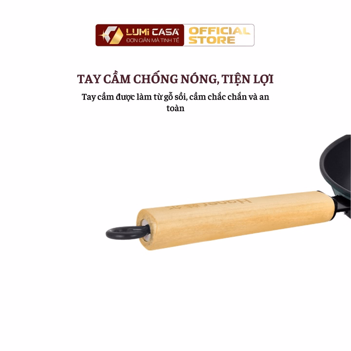 Tay cầm gỗ sồi cao cấp: Chống thấm nước, cách nhiệt tốt, chắc chắn và bền đẹp.