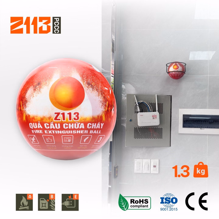 Quả cầu chữa cháy Z113 giúp dập tắt đám cháy ngay từ giai đoạn đầu, bằng cách tự động kích hoạt khi gặp lửa. Sản phẩm kích hoạt tung chất chữa cháy dạng bột khô lan rộng xung quanh, giúp ngăn lửa bùng phát mạnh.